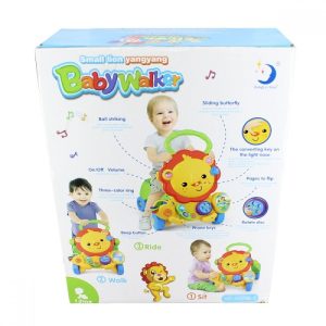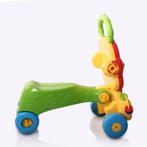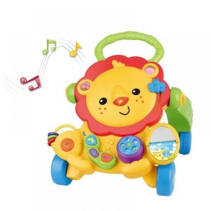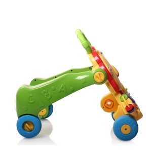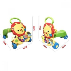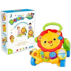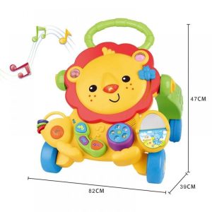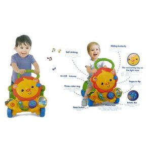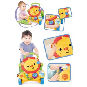 Are functie de premergator, jucarie muzicala, jucarie interactiva si trasformabil in masinuta de inmpins cu picioarele.