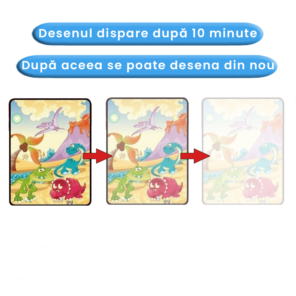 Peste câteva minute paginile se vor usca, devenind din nou albe. Te poți reapuca de desenat iar și iar.