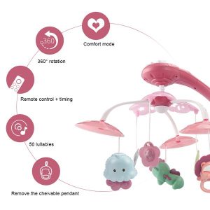 Muzica linistitoare, impreuna cu jucariile viu colorate vor creea un cadru de basm pentru cel mic.
