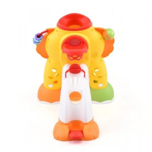 Prin designul colorat si atractiv, cei mici sunt atrasi la joaca, unde pot arunca bile, pot sorta forme, asculta melodii. Astfel acestia dezvolta abilitati precum atentia, functiile motorii, asocierea, coordonarea mana-ochi, creativitatea.