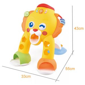 Centrul de activitati sub forma de leu propune celor mici mai multe variante de invatare prin joaca, fiind un bun prieten in dezvoltarea fizica si mentala a acestora inca de la cele mai fragede varste.