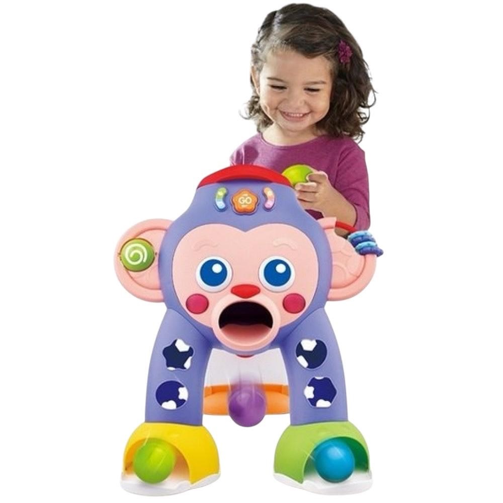 Centrul de activitati sub forma de maimuta propune celor mici mai multe variante de invatare prin joaca, fiind un bun prieten in dezvoltarea fizica si mentala a acestora inca de la cele mai fragede varste.