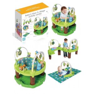 Scaunul este cu adevarat un centru de activitati pentru un bebelus. Acest jumper educativ,viu colorat si multifunctional este un loc de joaca minunat. Platforma este realizata din materiale de foarte buna calitate,care sunt sigure pentru copil. Copilul se poate roti in el si sa sara ,ceea ce ajuta la dezvoltarea abilitatilor si a coordonarii motorii. Centrul de activitati pentru bebelusi a fost dezvoltat in colaborare cu medicii pediatri si sprijina intregul corp al bebelusului in timp ce se joaca si invata. Este simplu si usor de asamblat. Picioarele sunt detasabile pentru o depozitare eficienta. Centru de activitati stimuleaza fiecare etapa de crestere a bebelusului: activitatile motorii sunt incurajate de platforma de sarituri, iar cele cognitive de jucariile atasate a caror scop principal este dezvoltarea creativitatii celor mici, inca din primele luni de viata.