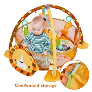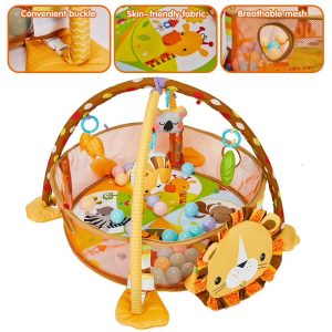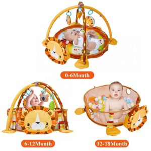 * joaca pe burtica, moment in care activitatile motorii sunt foarte interesante pentru el. Tot acum va invata sa descopere animalele viu colorate ale saltelutei