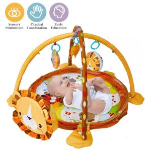 Un spatiu de gimnastica inovator conceput pentru a ajuta la dezvoltarea copilului de a urmari cu privirea deasupra capului.