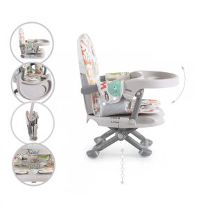 - * se fixeaza usor de scaunul adultului cu ajutorul centurilor atat de sezut cat si de spatar