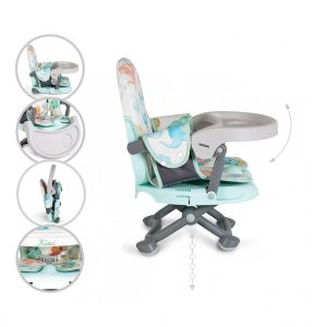 Fixati tava si utilizati centura de siguranta pentru a proteja copilul. Reglati inaltimea scaunului si gata, scaunul este pregatit pentru prima utilizare.