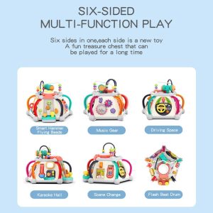 Aceasta este una dintre cele mai apreciate jucarii de invatare pentru sugari si prescolari de la Hola, care are 15 activitati practice diferite pe care un copil poate sa le exploreze. Dispune de sase parti interactive (inclusiv cea de sus) care ofera distractie fara sfarsit de invatare si joaca interactiva! Pe masura ce copiii descopera cum sa activeze muzica, sunetele sau diferite jocuri, ei vor invata cum actiunile lor fac lucruri distractive.