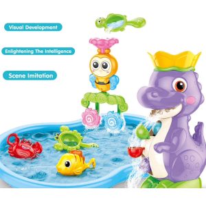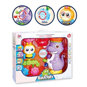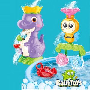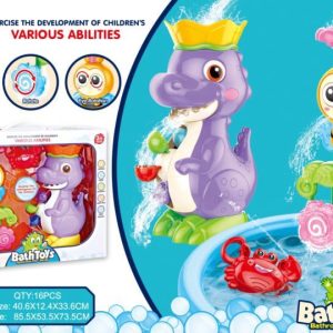 Aventura în apă cu un dinozaur si o albinuta! Distracția este să turnați apă în recipientul de sus, sub forma unei coroane. Și atunci apa va începe să curgă prin toate elementele jucăriei și va oferi copiilor divertisment vizual . Eroii jucăriei sunt un dinozaur frumos colorat și o albinuta zâmbitoare,care vor face din fiecare baie o plăcere pură. Jucăria încurajează creativitatea și imaginația copiilor . În plus, dezvoltă gândirea logică – copilul poate observa cum apa, turnată într-un loc, începe să curgă prin alte găuri ale jucăriei și astfel pune în mișcare elementele jucăriei. Vizionarea apei curgând prin jucărie va stimula în mod pozitiv vederea. Setul include un dinozaur,o albinuta si un crab.Ventuzele incluse in set iti vor permite sa atasezi jucaria de perete, astfel incat jucaria sa fie mereu la vederea copilului in timp ce face baie. Jucăria va fi grozavă nu numai în cadă, ci și în timpul unui joc comun în piscină sau în timpul relaxării lângă lac. Copilul tău va putea petrece fiecare aventură pe apă alături de cei doi prieteni. Un set fermecător cu un dinozaur si o albinuta este o propunere excelentă de divertisment și o formă de sprijin pentru dezvoltarea corectă a unui copil . Datorită setului, fiecare baie poate deveni pură plăcere și distracție fantastică, mai degrabă decât o corvoadă.