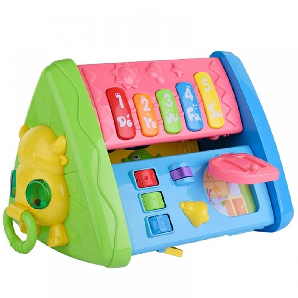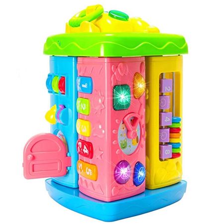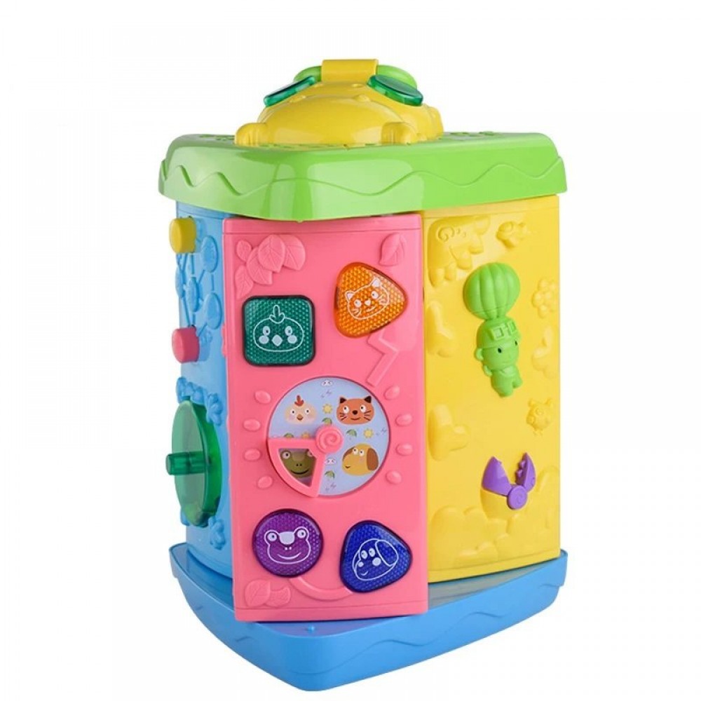 Turnul educativ interactiv multifunctional cu sunete si lumini din seria de jucarii Spring Flower este cea mai apreciata jucarie de copii prin coloristica si prin multitudinea de activitati special concepute pentru captarea atentiei celor mici. Vă prezentăm o jucărie interactivă grozavă pentru fiecare copil mic! O jucărie destinată copiilor de peste 18 luni pe care ii ajuta sa inteleaga concepte spatiale (inauntru, afara si rostogolire, urmarire) si concepte acustice (mai incet, mai tare si mai lent, mai rapid). Turnul interactiv este un bestseller în categoria sa și un succes absolut in randul jucăriilor interactive pentru copii mici. Jucăria este interactivă și educativă și ii educa pe copii prin joacă. Jucaria te introduce în lumea culorilor, formelor și sunetelor de animale, melodii direct redate , o mulțime de jocuri și funcții pe care copilul tău le poate folosi în fiecare zi! Cubul are 3 laturi rotative, iar fiecare dintre ele are 3 pereti cu alte jocuri, ceea ce ofera in total 9 pereti care vor oferi o multitudine de activitati ,evitand astfel plictiseala. Are peste 20 de funcții diverse pe 9 planuri extrem de colorate si melodii direct inregistrate cum ar fi ,,Oh,Suzana”,,,I tsy bitsy spider”,etc. Culorile pastelate si moderne vor evidentia jucaria si va capta atentia copilului dvs.Fiecare nivel de joaca este diferit și surprinde cu propunerile sale distractive. Jucăria se doteaza cu 2 baterii R6(neincluse) si emite sunete cu ajutorul butoanelor strălucitoare. Aproape toate partile sunt mobile pentru a imbunatati abilitatile vizuale si auditive ale copiilor,iar manopera solida este un avantaj si jucaria il va interesa cu siguranta chiar si pe cel mai pretentios copil.