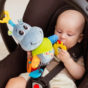 Un hipopotam cu un zambet larg va avea grijă de buna dispoziție a bebelușului.