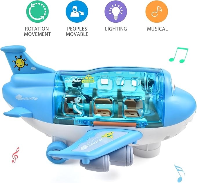 Sunetele sunt, de asemenea, o componentă importantă a acestei jucării. Când avionul este activat, acesta emite sunete de motor, care simulează zgomotul unui avion real în timpul decolării sau aterizării. Sunetele de aterizare sau decolarea sunt foarte clare și realistice, ajutând copiii să se simtă ca și cum ar fi parte dintr-o adevărată călătorie aeriană. Aceste efecte sonore nu doar că adaugă realism, dar și stimulează simțurile auditive ale celor mici, contribuind la o experiență de joc mai completă.