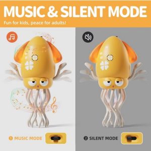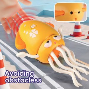 Cu tentacule care se mișcă haotic, melodii vesele și lumini colorate, această jucărie interactivă captivează atenția instant.