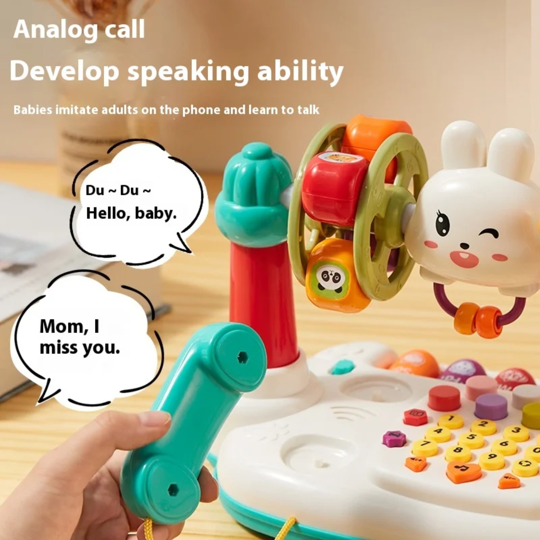 Designul său colorat și piesele variate atrag instant atenția, iar combinația dintre tastele muzicale, telefonul detașabil și zornăitorile rotative îl fac util și deosebit de interesant pentru orice copil.