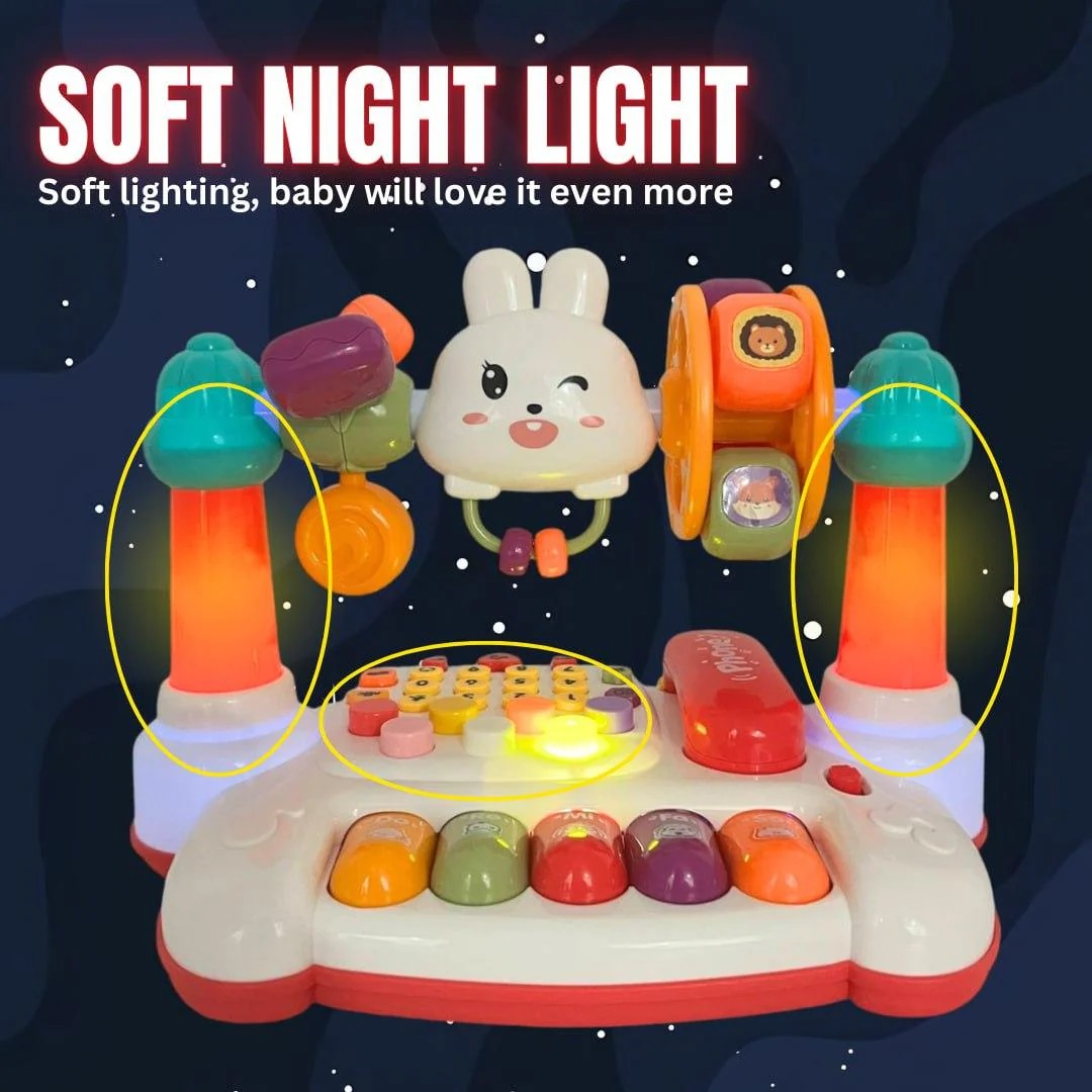 Un strop de veselie și sunete jucăușe transformă fiecare zi într-o poveste nouă atunci când cel mic descoperă acest pian interactiv cu iepuraș.