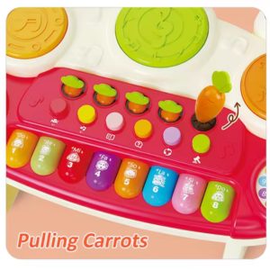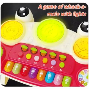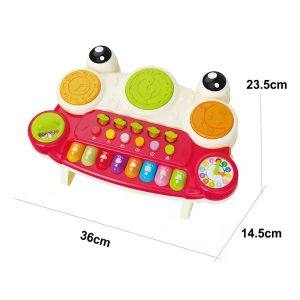 Un cadou ideal pentru micii pasionați de muzică! Orga este o jucărie educativă care oferă copiilor oportunitatea de a explora lumea sunetelor, a ritmului și a interpretării muzicale, într-un mod distractiv și interactiv. Conceputa după imaginea unei broaște drăguțe, cu culori strălucitoare și forme atractive, este deosebit de potrivita pentru copiii mici, făcând învățarea muzicii interesantă și atractivă, promovând în același timp dezvoltarea emoțională. Integrând tobe manuale, claviatură și diverse efecte sonore de instrumente, ofera opțiuni bogate de creare și interpretare muzicală pentru a stimula creativitatea si interesul copiilor pentru muzică, potrivita pentru copiii de diferite vârste pentru a explora lumea muzicii.