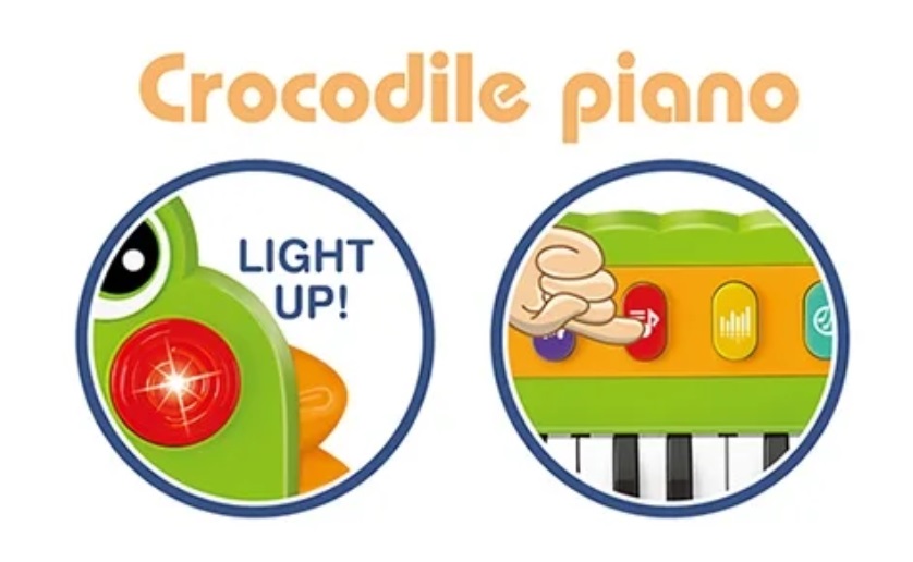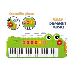 Descoperă bucuria muzicii cu acest pian electronic adorabil în formă de crocodil, special conceput pentru copii! Cu 37 de taste și multiple funcții interactive, jucăria îi ajută pe cei mici să își dezvolte simțul muzical, creativitatea și coordonarea.
