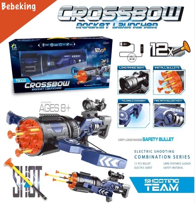 Crossbow este un lansator de sageti din plastic cu ventuza care va oferi o distractie extrem de incitanta si dinamica pentru toti iubitorii de jocuri de aventura, militare si de actiune. Lansatorul este caracterizat de o manopera precisa si o constructie durabila, ceea ce il face rezistent la jocuri intense, fiind in acelasi timp usor și confortabil de tinut in mana. Contine motive grafice interesante care incanta si atrag privirea. Copiii se pot bucura de o experienta de tragere realista, dezvoltându-și în același timp abilitățile manuale și coordonarea motorie. Crossbow vă permite sa jucati diverse scene din filme, jocuri precum si sa va creati propriile scenarii de joc, stimuland in acelasi timp imaginatia si incurajand creativitatea. In plus, este perfect pentru joaca in grup, atat acasa, cat si in aer liber. Setul include o oglinda cvadrupla, o baterie de 3,7 V 400 mAh ,un cablu de incarcare USB si 12 sageti din plastic cu ventuza, care pot fi incarcate cu usurinta in lansator. Setul este o idee excelenta de cadou pentru baieti de la 8 ani.