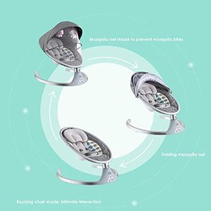 Sistem inteligent: acest balansoar isi schimba automat unghiul si gradul de balansare in conditii optime in functie de greutatea bebelusului. Puteti seta timpul si modul de leagan si puteti activa muzica pentru a calma copilul. Odata ce sistemul detecteaza ca copilul doarme, se va opri automat.