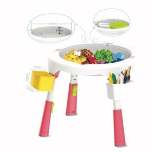 Masuta poate fi folosita atat la interior cat si la exterior Foarte rezistenta : suporta greutate de pana la 32 kg. Poate fi demontata cu usurinta pentru a o depozita, sau muta. Stimuleaza creativitatea copiilor, recomandata si pentru dotarea gradinitelor, spatiilor de joaca, cluburi de copii etc.