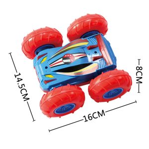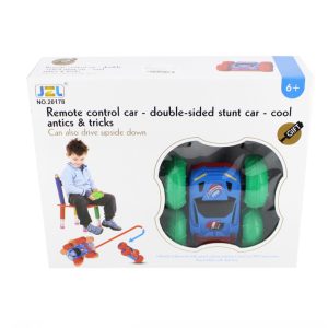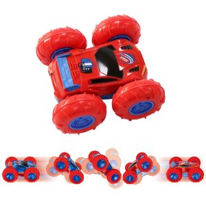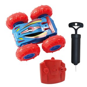 Masinuta reversibila, cu roti de cauciuc, gonflabile, merge pe ambele parti, ideala pentru cascadorii pe teren accindentat, distractie si adrenalina. Sare, face tumbe, se rasuceste 360. Masinuta are tractiune 4×4 nimic nu o poate opri. Ajuta la dezvoltarea abilitatilor de indemanarea, orientarea, concentrarea, atentia, coordonare mana-ochi.