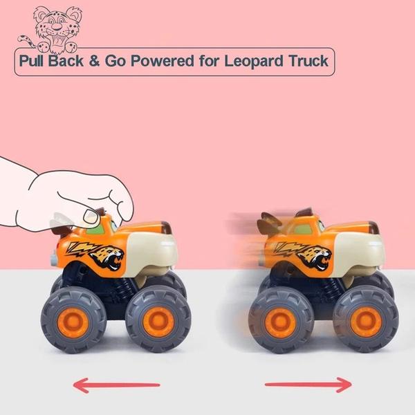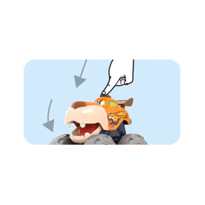 Acesta masinuta pentru copiii mai mici are o forma si un design foarte frumos, de animalut, un leopard infuriat. Apasand pe capul lui, leopardul va deschide gura aratandu-si mandru dintii. Acesta masinuta este dotata cu motor cu pull-back. Masinuta se trage inapoi, iar apoi ea va porni singura spre directia inainte. Jocul cu aceasta masinuta, va starni curiozitatea copiilor si le va imbunatati coordonarea mana-ochi, respectiv cauza-efect.