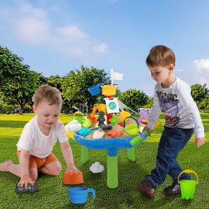 Aceasta masuta in culori vesele este gandita special pentru ca joaca cu apa si nisip sa ramana organizata, iar cei mici vor fi incantati sa aiba un spatiu definit in care sa poata „lucra” cu formele si accesoriile incluse in set.