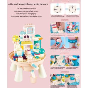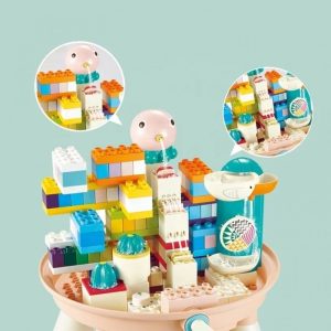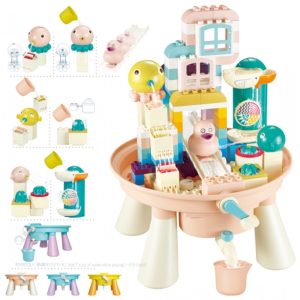 Masuta noastra cu activitati ofera copiilor un mod captivant si distractiv de a se juca cu cele 123 de cuburi de constructie de dimensiuni mari. Ofera o experienta unica si placuta depasind asteptarile. Copiii pot imbina piesele in diferite moduri, pot observa miscarea apei si pot explora principiile stiintifice in timp ce se distreaza. Aceasta masuta multifunctionala este raspunsul la nevoia copiilor pentru jocuri creative facand din invatare o aventura interesanta Se pot juca impreuna cu familia sau prietenii lor, pot colabora pentru a rezolva probleme si pot dezvolta abilitati de comunicare si a lucrului in echipa.Dezvolta creativitatea, motricitatea, gandirea logica a celor mici.