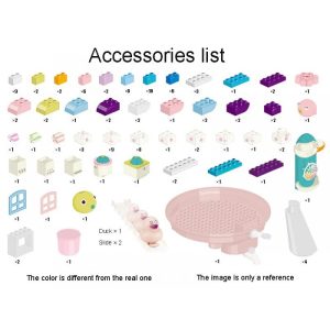 Setul contine 123 de cuburi si forme frumos colorate din plastic, de diferite marimi,o masuta frumoasa cu un recipient mobil din plastic;poate fi folosit atat in interior cat si in exterior.