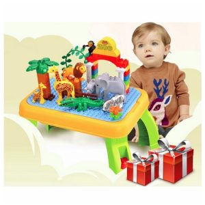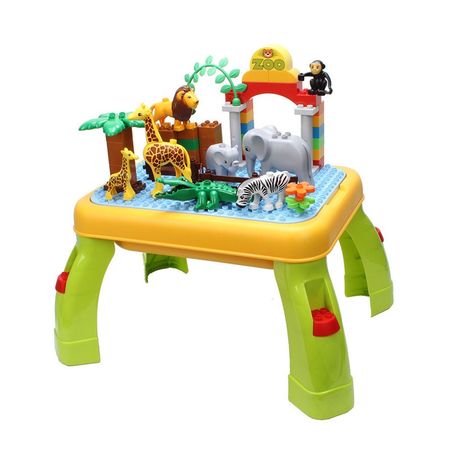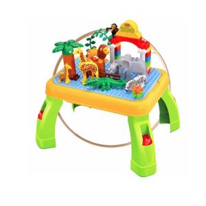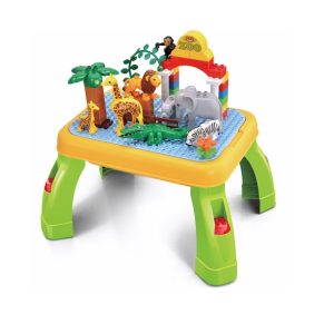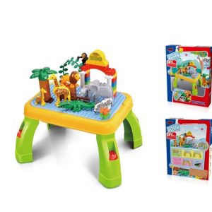 Exista o multime de moduri in care copilul tau se poate juca si invata, masa avand o enciclopedie completa de animale. Masuta educativa tip Lego Zoo are figurine pe care copilul le poate aseza cum doreste, isi dezvolta abilitatile creative, de asemenea, poate scrie si desena pe masa iar cand joaca s-a terminat, are o sectiune de stocare cu ajutorul careia copilul dvs. isi dezvolta si abilitatile de organizare.