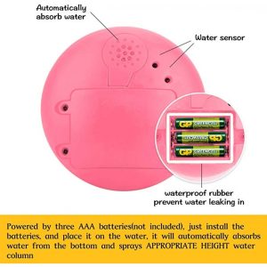 Amuzant – Pur si simplu asezati mingea cu inductie pe apa, aceasta va absorbi automat apa si o pulverizeaza, insotita de lumini flash si muzica, instalati baza si folositi roata universala pentru a se invarti liber pe pamant.