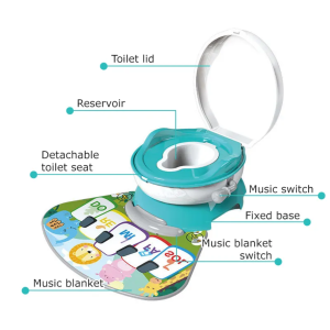 Este o olita practica avand un design nou. Prevazuta cu un covor muzical tip pian care se activeaza atunci cand copilul sta pe olita si da din picioruse. Este usor de intretinut. Fabricata din material plastic de inalta calitate non- toxic. Olita muzicala faciliteaza antrenarea copilului si face ca procesul de invatare de trecere la toaleta sa fie mai distractiv,atractiv.Toaleta dezvolta independenta copiilor, fiindu-i mai usor sa faca tranzitia de la olita sau scutec la vasul de toaleta; recipient colector detasabil pentru igienizare poate fi utilizata si ca un scaunel cand se lasa capul.