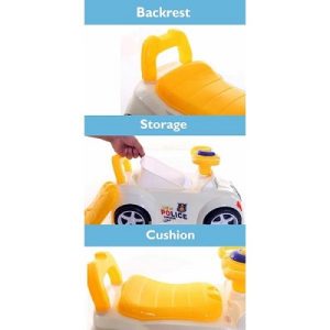 Olita are recipient detasabil cu capac, fiind usor de curatat, iar cand nu e folosita pe post de olita, masinuta este complet functionala, transformandu-se intr-un vehicul-masinuta fara pedale, sau antepremergator, avand un maner de care bebe se poate sprijini cand merge.