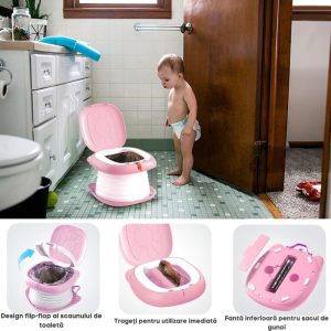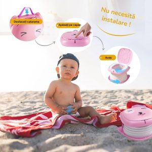Versatilitate: Ideala pentru activitati in aer liber, olita poate fi folosita oriunde, asigurand confort si igiena pentru cei mici, indiferent de locatie.