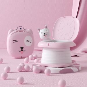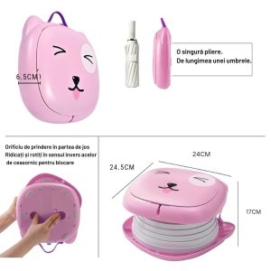 Olita portabila si pliabila bebe, cu maner, model pisicuta roz