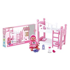 Patutul etajat de jucarie cu papusa inclusa Baby este o piesa de mobilier eleganta, necesara oricarei fetite care are grija constanta de papusile ei
