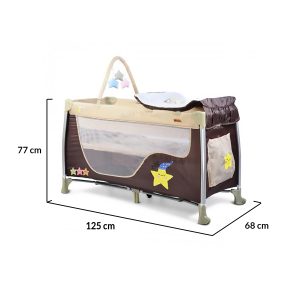 Patutul Good Night este destinat copiilor inca din primele clipe de viata si pana la trei anisori. Patutul este echipat cu masa de infasat si bara de jucarii. Usor de pliat, patutul Good Night va fi insotitorul perfect in vacante si concedii.Good Night este livrat impreuna cu o saltea confortabila, care poate fi pozitionata pe doua nivele si geanta pentru calatorii.