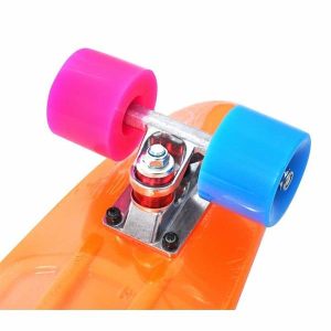 Penny board-ul este dotat cu roti rezistente din poliuretan, colorate diferit si rulmenti ABEC 7 care va asigura o deplasare silentioasa si un bun control al placii.
