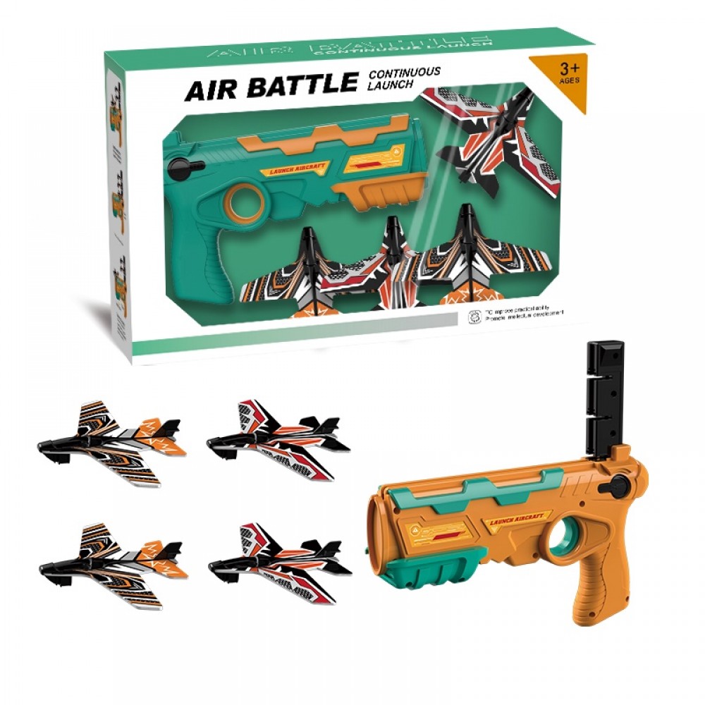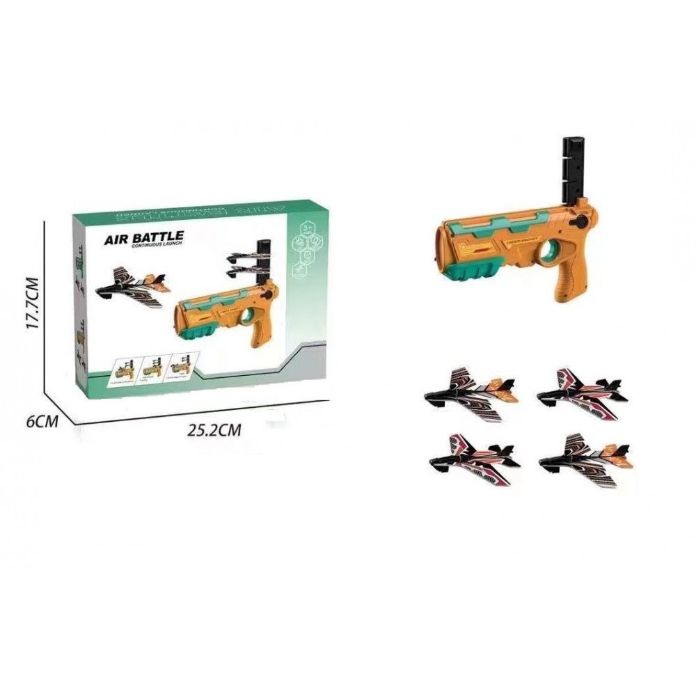 Fixeaza avioanele pe lansatorul pistolului, apasa pe tragaci si priveste cum acestea zboara! Lanseaza-le cat mai sus si distreaza-te ore intregi sau surprinde-ti prietenul pasionat de aviatie cu un cadou perfect!