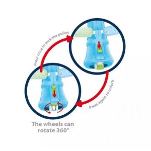 Rotile pot fi scoase in afara picioarelor pentru ca bebe sa se deplaseze, sau pot fi lasate inauntru, astfel incat centrul de activitati sa nu se miste din loc – pe talpile picioarelor exista portiuni cauciucate, antialunecare.