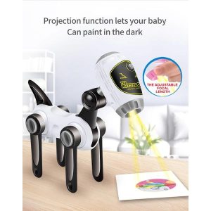 Proiectorul desen pentru copii model catel este o jucarie multifunctionala: lampa, proiector si set de desen.