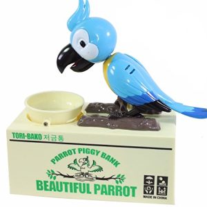 Cea mai haioasa pusculita pe care ati vazut-o vreodata! Un mod placut de a invata copilul sa economiseasca. Un papagal infometat care ciuguleste numai banuti!Este un model deosebit si unic care va face sa zambeasca pe oricine, indiferent de varsta.Banutii se pot lua cu usurinta prin scoaterea capacului din fata pusculitei.Papagalul pare adevarat,iar prin comportamentul sau trezeste oricui pofta de a face economii .