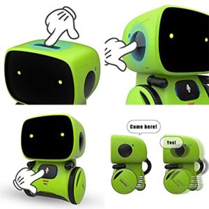 Robot inteligent interactiv, control vocal Aceasta jucarie inteligenta nu aduce doar distractie copiilor tai prin cantec, dans sau mers in toate directiile, ci poate chiar raspunde sau repeta cuvintele spuse. Apollo ofera ore de distractie si educatie aducand copiilor experienta cu robotica si tehnologiile avansate. Butoane sensibile la atingere Robotul Apollo poate raspunde la inductia atingerii pentru a face stanga, dreapta, a merge inainte sau inapoi; puteti regla volumul sau intra in alt mod. Atingeti zona superioara a capului, ochii sau urechile si veti putea interactiona in mod inteligent cu robotul. Mod inregistrare Apasand lung butonul din piept, robotul va trece in modul de inregistrare. Puteti inregistra maxim 8 secunde si maxim 3 inregistrari. Apasati scurt butonul pentru a reda inregistrarile. Mai multa distractie cu noul partener de joaca al copilului tau. Cadoul perfect Robotul Apollo este o jucarie sigura recomandata copiilor peste 3 ani. Este cadoul perfect pentru o zi de nastere sau de Craciun atat pentru fete cat si petnru baieti.Are dimensiuni reduse fiind astfel comod de adaugat in geanta cu jucarii ale copilului