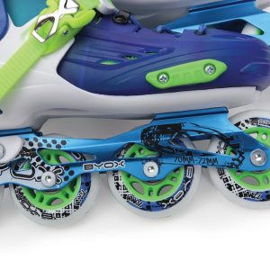 Rolele BYOX JR1 sunt role durabile, cu marime reglabila prin apasarea unui singur buton. Sina din aluminiu, rulmentii ABEC 5, rotile de 70×24/72×24 mm (in functie de marime) asigura o manevrabilitate excelenta a rolelor.