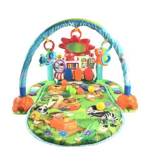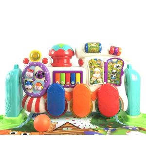 In prima etapa bebelusul sta intins pe spate si se poate juca cu jucariile care atarna, muzica este activata cand pianul este lovit cu picioarele.