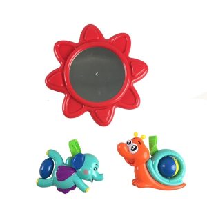 Jucariile atragatoare si culorile vii stimuleaza bebelusul sa se intinda, sa loveasca si sa prinda, astfel dezvoltandu-se abilitatile motorii si coordonarea ochi-mana