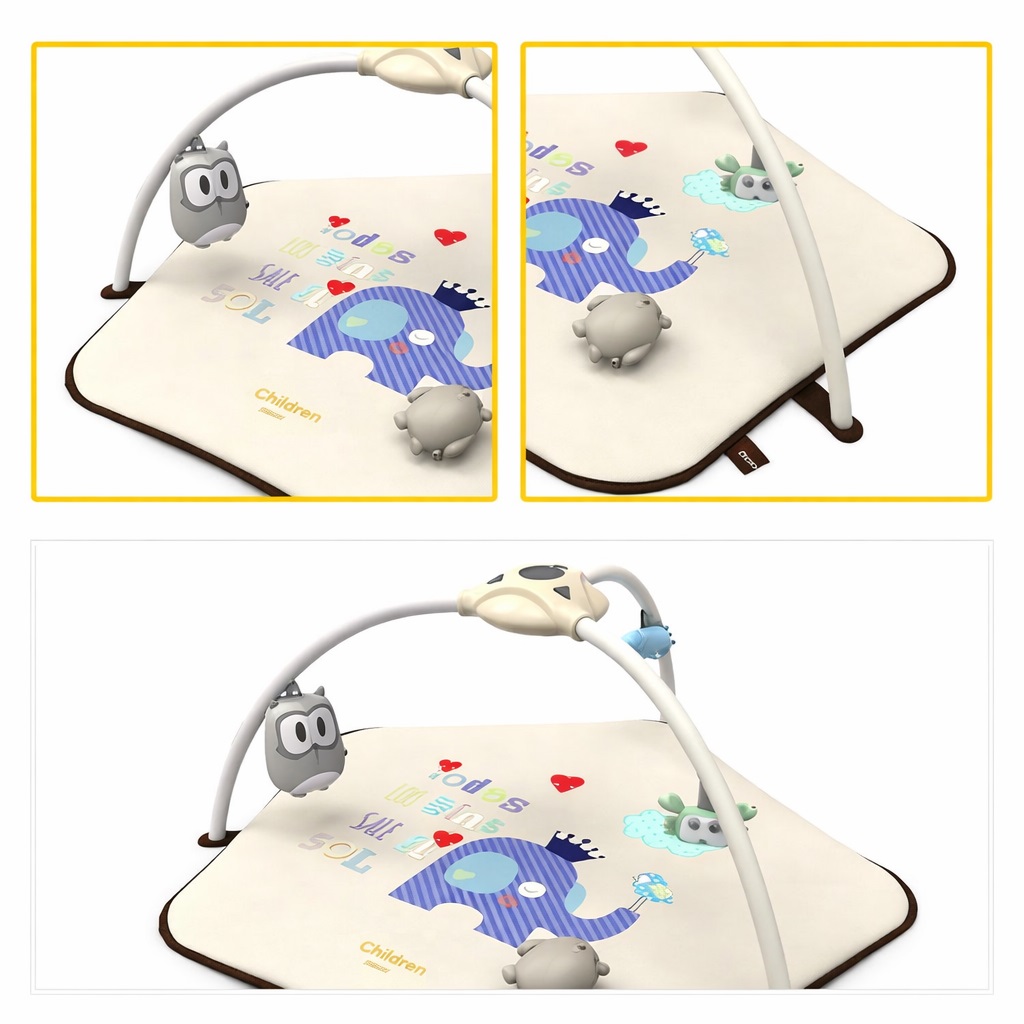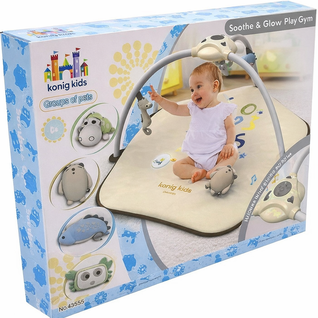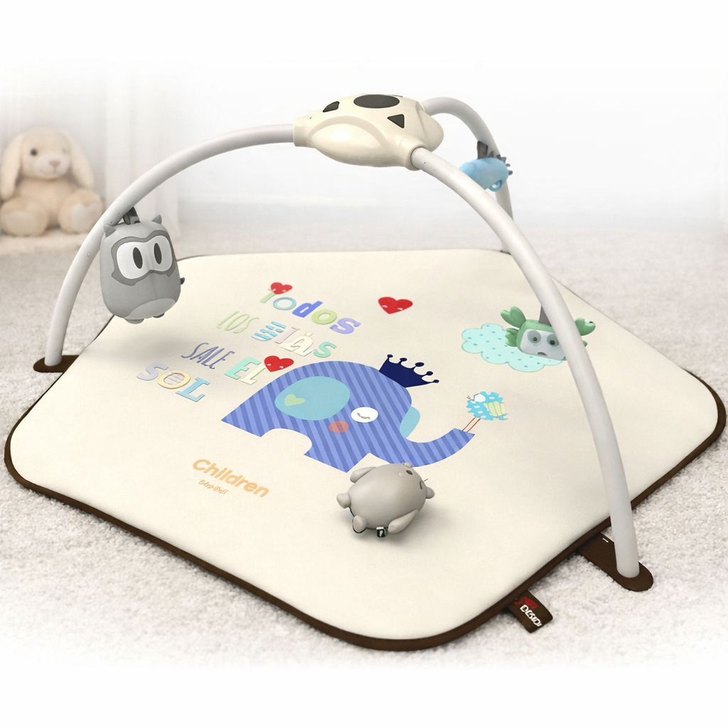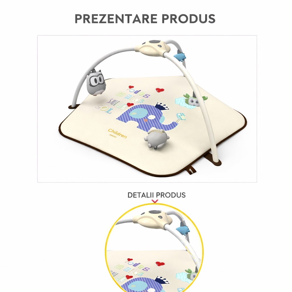 Covorasul are elemente interactive care vor atrage atentia copilului, precum un proiector de stele, lampi LED stralucitoare si o cutie muzicala cu melodii si sunete placute ale naturii!