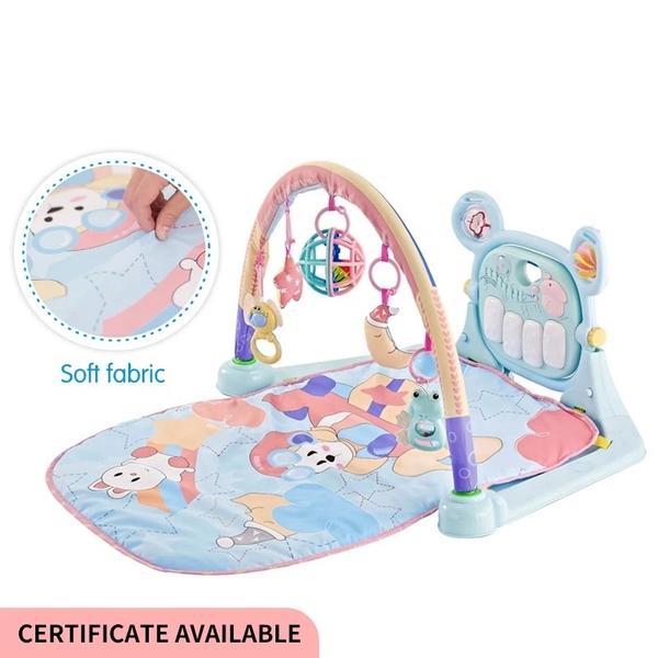 Covorul de joaca are un sistem de muzica ce poate fi auzita incontinuu timp de 15 minute.