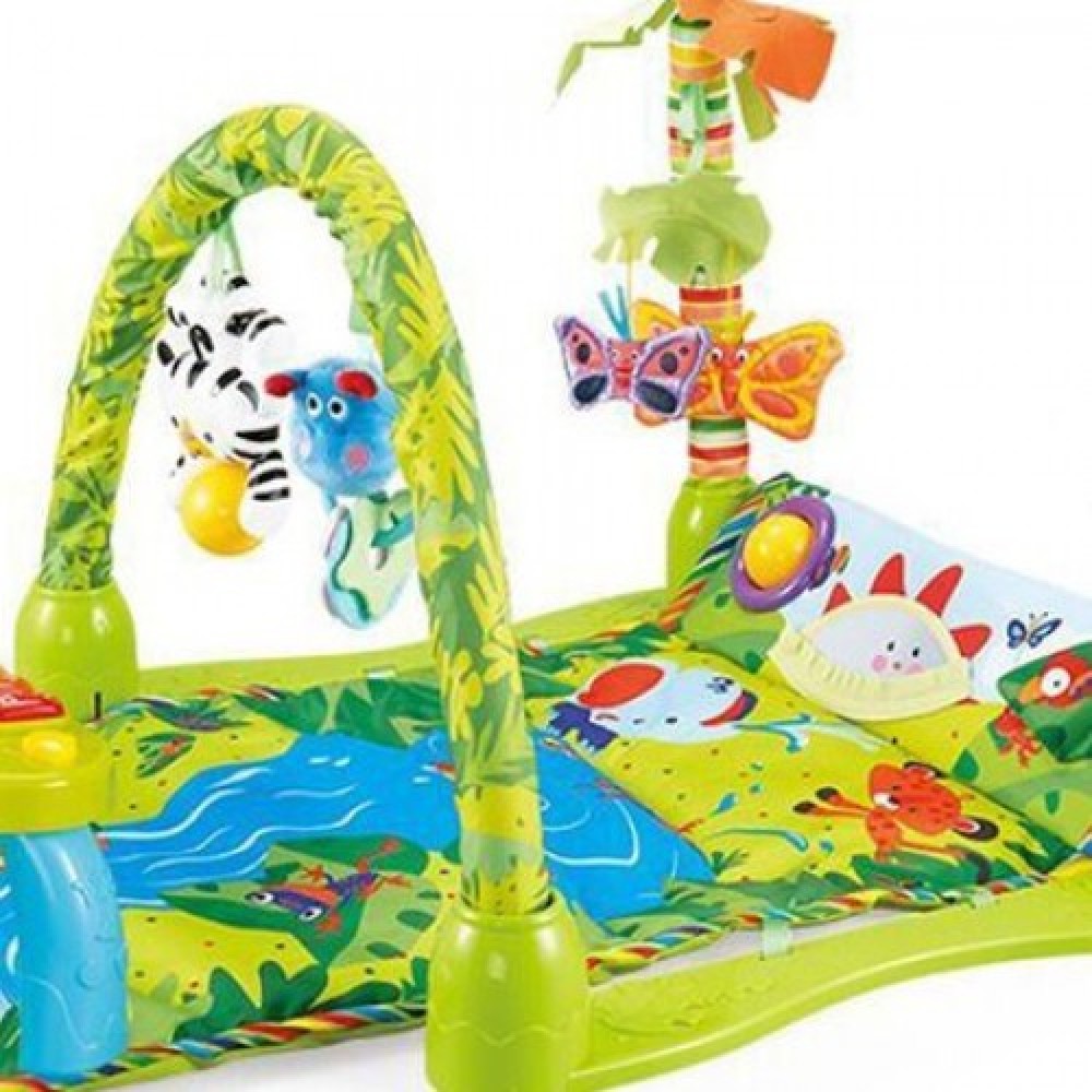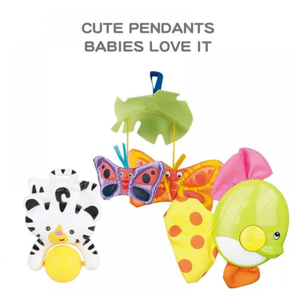 Salteluta ajuta copiii sa distinga intre diferitele nuante si forme, iar jucariile atarnate de bara de jucarii ajuta la dezvoltarea coordonarii mana-ochi.