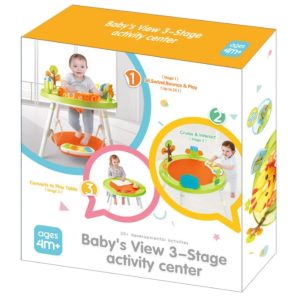 Centrul de activitati este un ansamblu complet, cu 25 de activitati dedicate dezvoltarii armonioase a copiilor. Centrul este dezvoltat in colaborare cu un medic pediatru si le permite micutilor sa se simta in largul lor la joaca, inainte si dupa ce au facut primii pasi. El se transforma in 3 solutii diferite adaptate etapelor din viata copiilor.